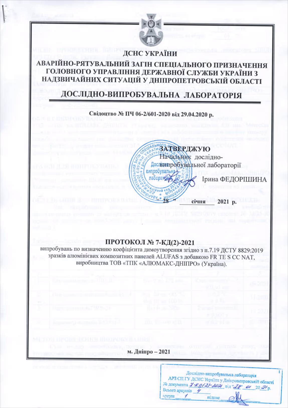ПРОТОКОЛ Nº 7-КД(2)-2021 випробувань по визначенню коефіцієнта димоутворення згідно з п.7.19 ДСТУ 8829:2019